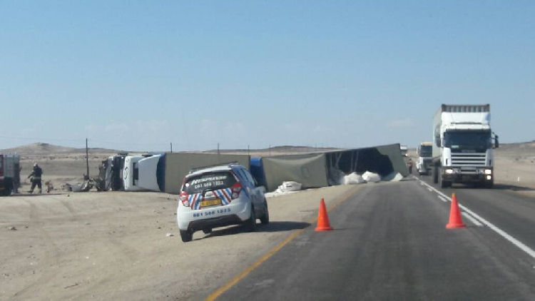 The accident happened about 30 kilometres from Swakopmund at around 12h30. Those who died are the truck driver and a passenger in the bakkie. Although details are sketchy, Swakopmund fire chief Adri Goosen who was at the scene when The Namibian contacted him said it was a head-on collision.